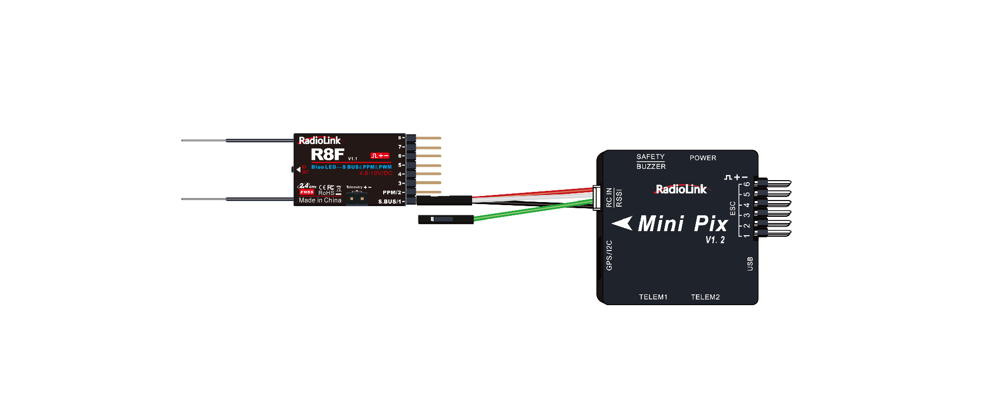When at SBUS/PPM signal output, the flight controller can be connected and works with GPS to realize the RTL function of the shipping boat or setup of Mecanum models.