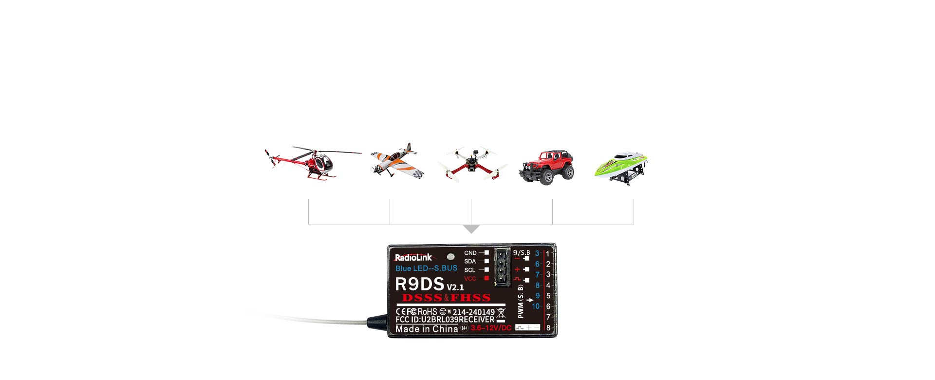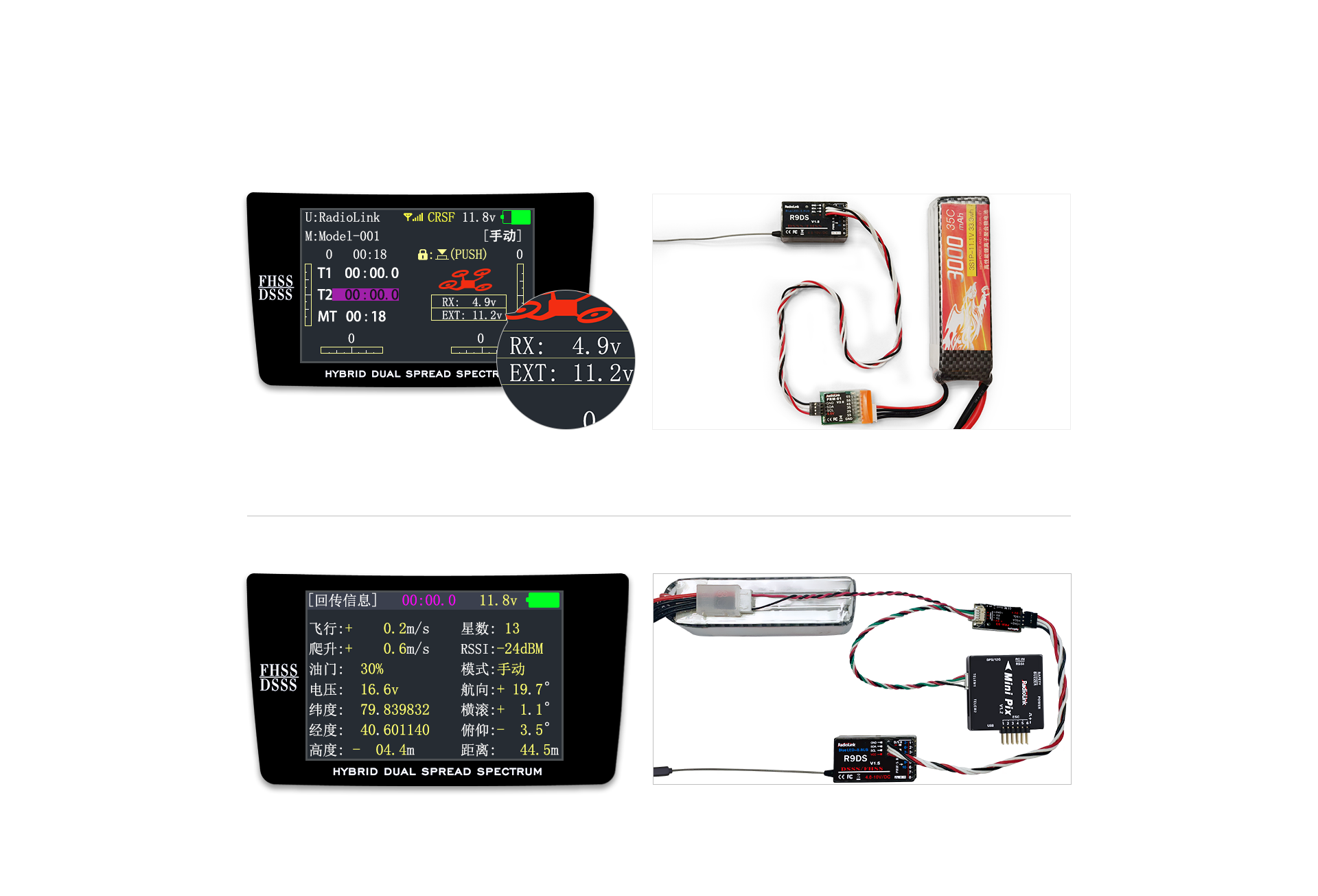 真正FHSS和DSSS混合双扩频,16信道伪随机序列跳频,实现优越的抗多径干扰和同波段干扰能力,适合多人同时同场地竞技,稳定遥控距离空中4000米。