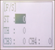 The channel 3 and channel 4 servo position can be set from the transmitter. When CH3 is assigned to the 3rd channel key, this setting is linked to the key. When CH3 and CH4 is not assigned to the 3rd channel key, it can be set with this screen.