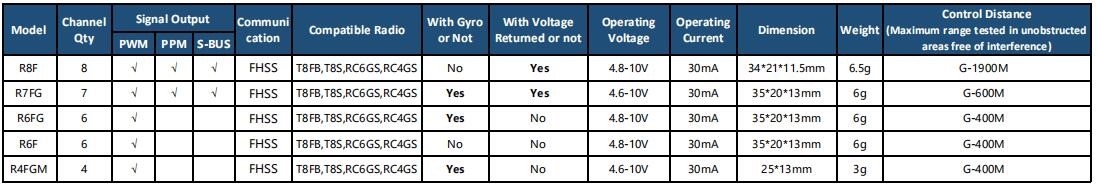 3. Our products support standard SBUS signals compatible with various flight controllers. Please refer to the chart below for detailed information.