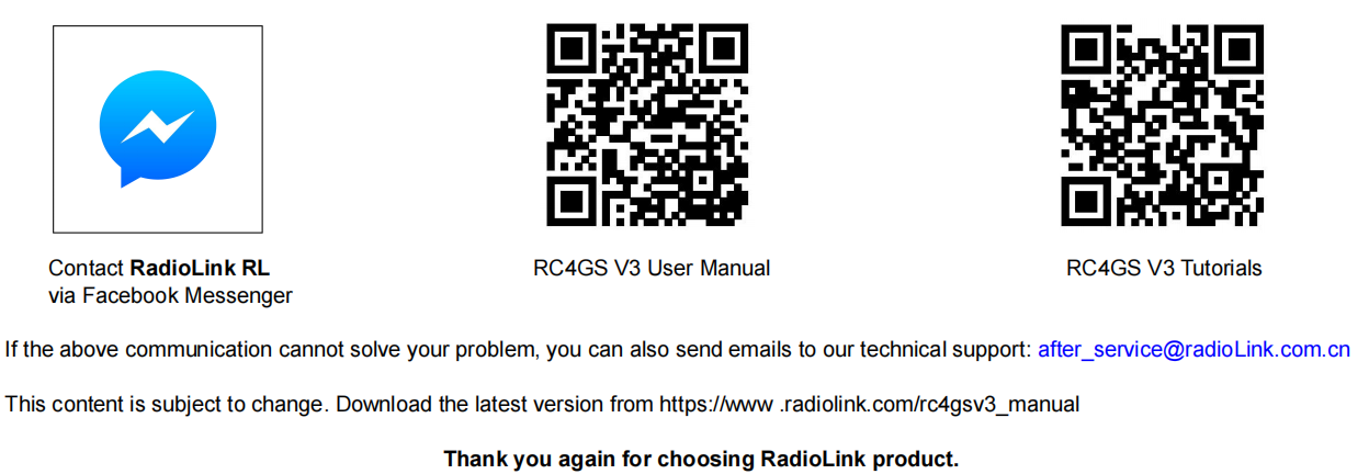 Please search Radiolink_official on YouTube to access RadioLink official channel and check all the below video tutorials of RC4GS V3. View the playlist of RC4GS V3 or search key words on our channel for the function you want.