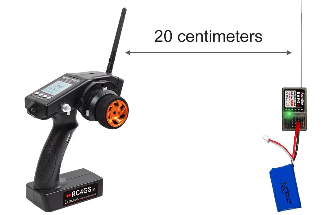 For example: Bind RC4GS V3 with a truck and a car and turn all them on. First, use RC4GS V3 to control the car to run to the bucket of the truck, and then switch the receiver ID on the truck to drag the car back to the destination.