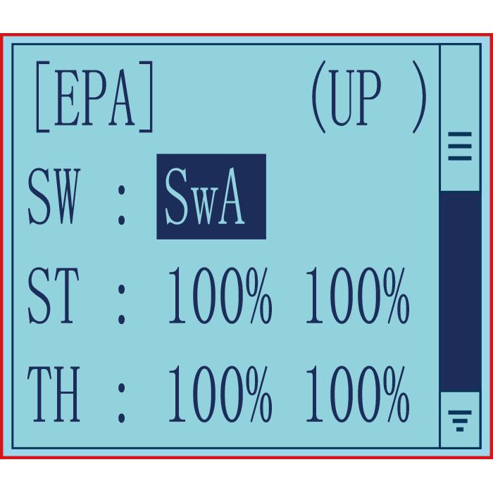 POS: means the position of the switch used to control this function. UP (up)/DOWN (down): It indicates the position of the selected switch. Push/Press the switch to different positions to set different travel amount.