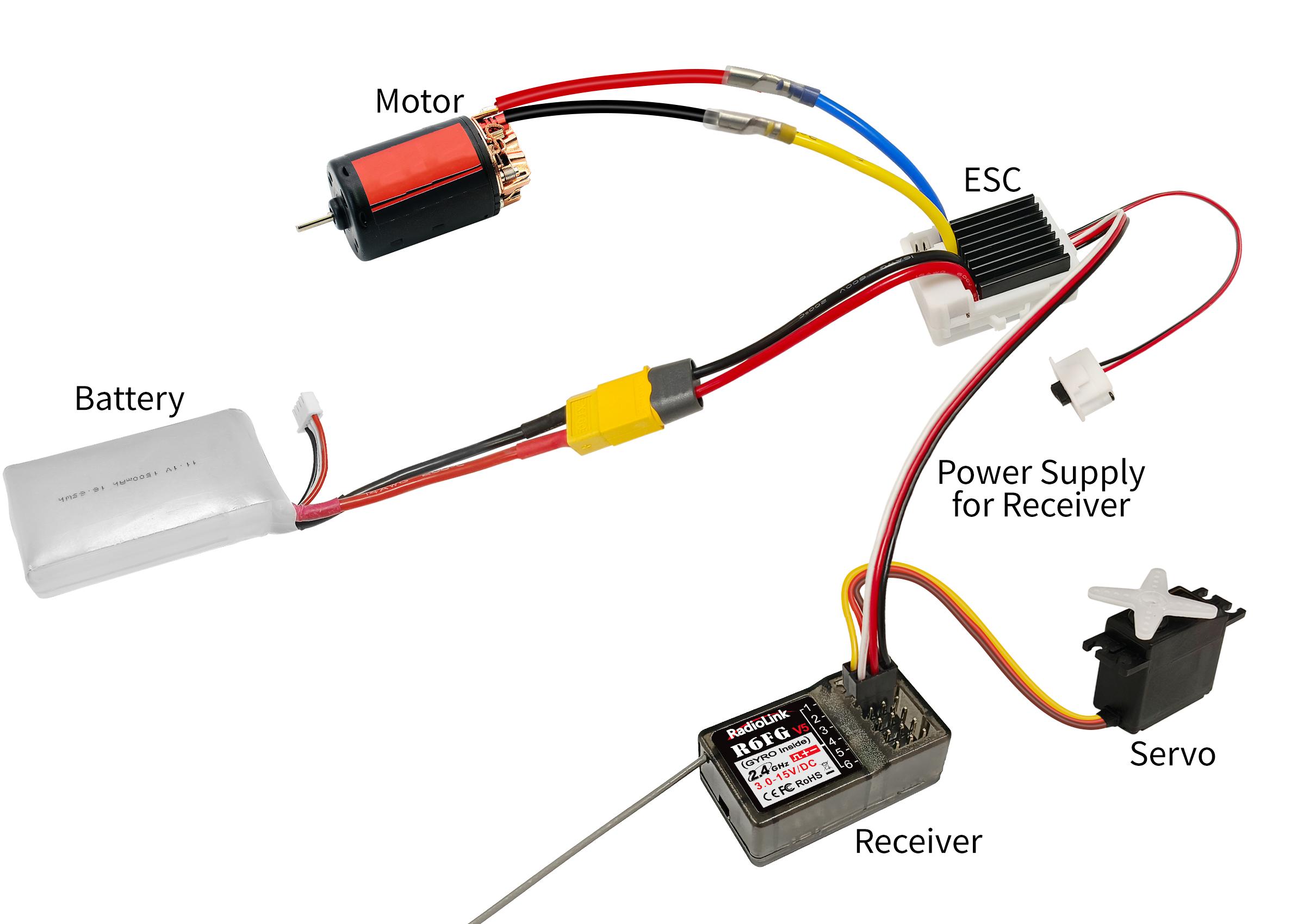 Operating Voltage: 4.8-16.8V, (6pcs of AA batteries or a 2S-4S LiPo battery)