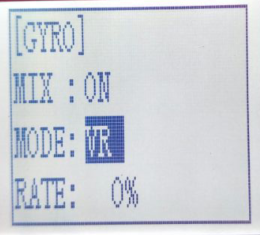 When MIX set OFF, gyro is disabled while when MIX set ON, you can adjust gyro sensitivity STD or VR. STD is adjusted on screen and VR is default CH3.