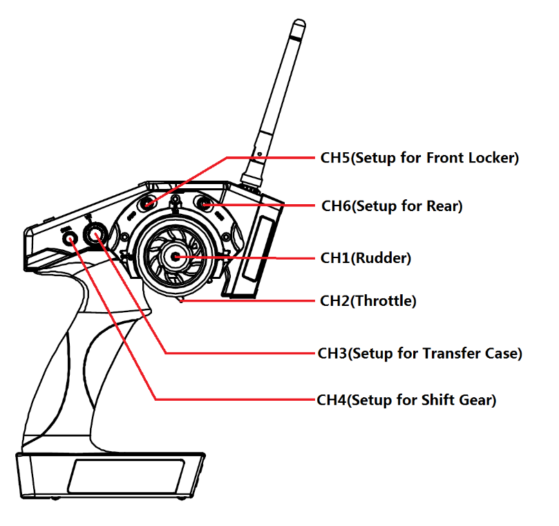 If you use RC6GS to control RC crawler, you can setup each channels as below.