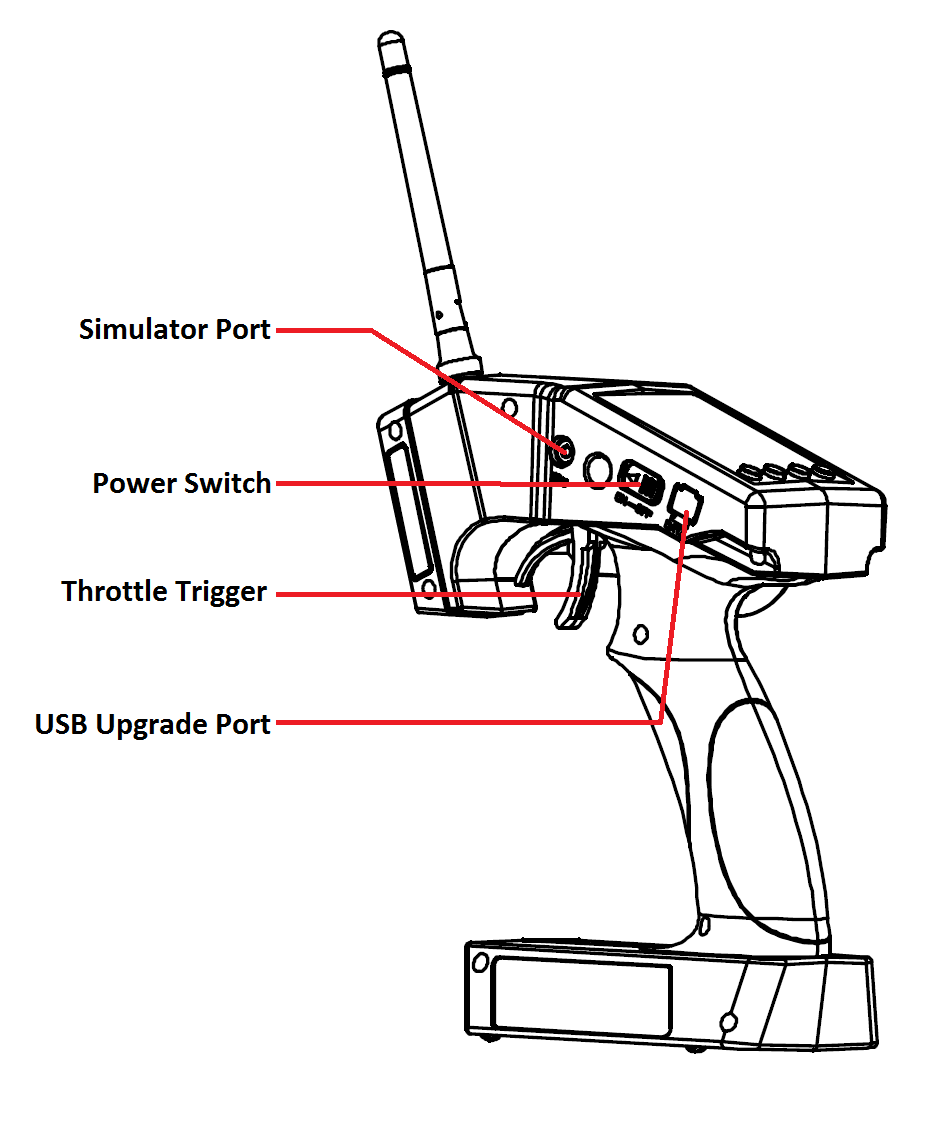Water or moisture may enter the transmitter inside through gaps in the antenna or joystick and cause model instability, even out of control. If running in the wet weather(such as game) is inevitable, always use plastic bags or waterproof cloth to cover the transmitter.