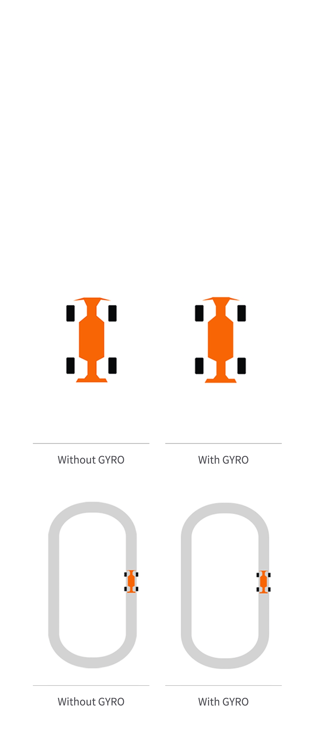 It is anti-slip and keeps the uni-direction. With the integrated gyro in R7FG installed, the vehicle turns more smoothly, and drifting from high speed can be prevented.