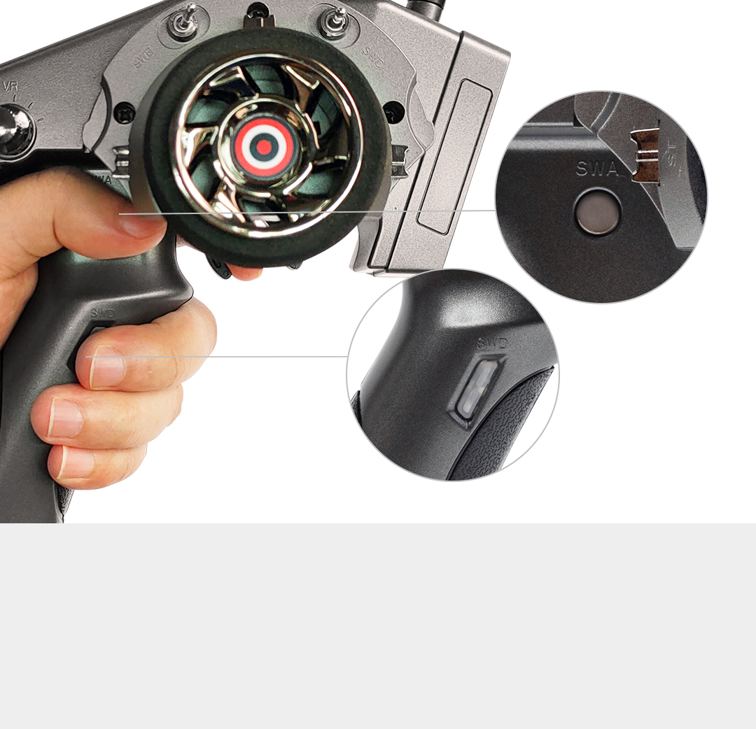 两种方式设置陀螺仪感度,便捷顺心,让陀螺仪自稳功能发挥更出色。可选择通过“STD”或者第三通道VR开关来开启或关闭陀螺仪感度。