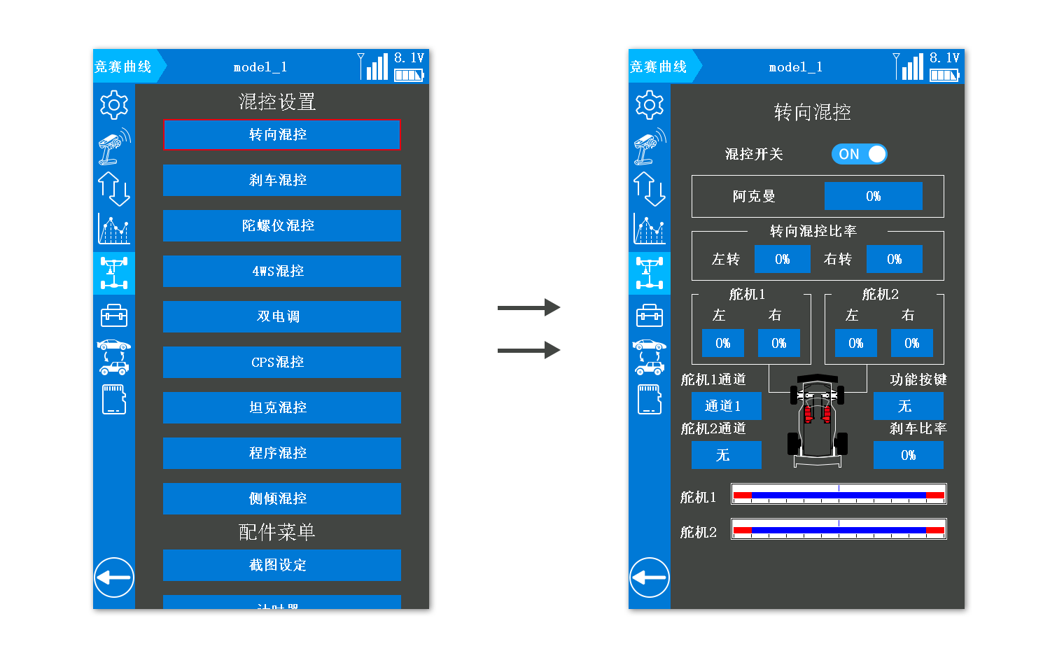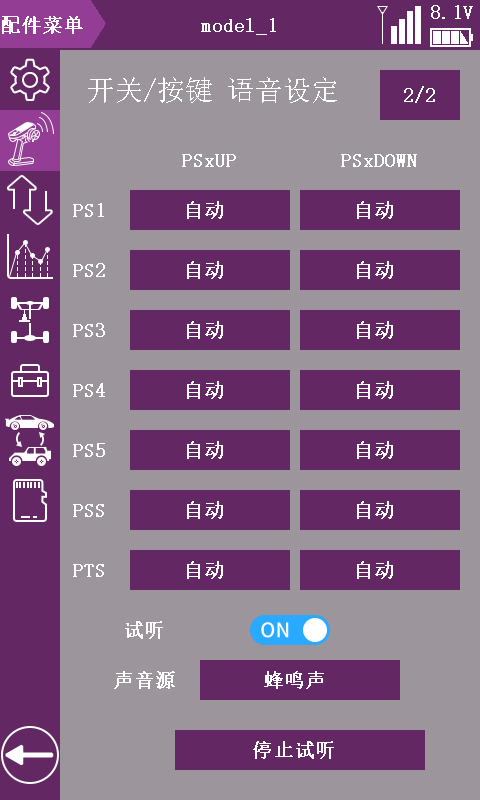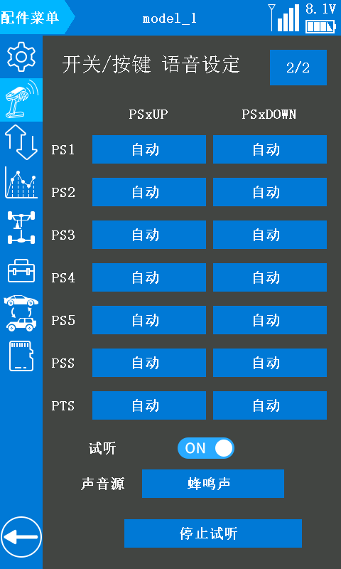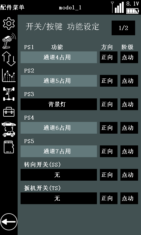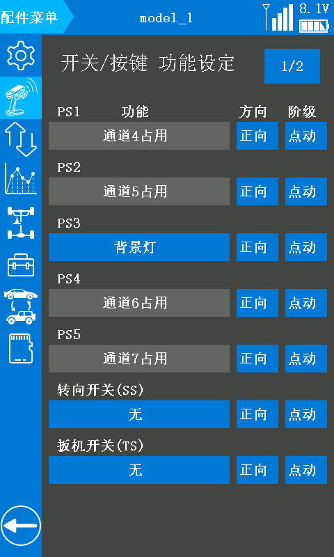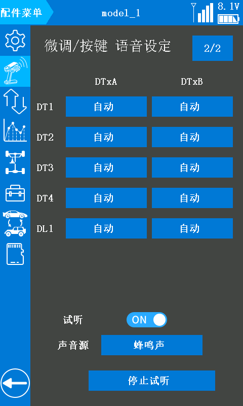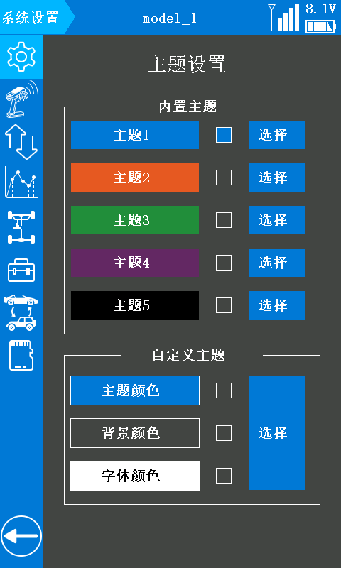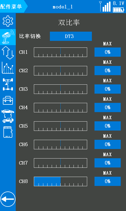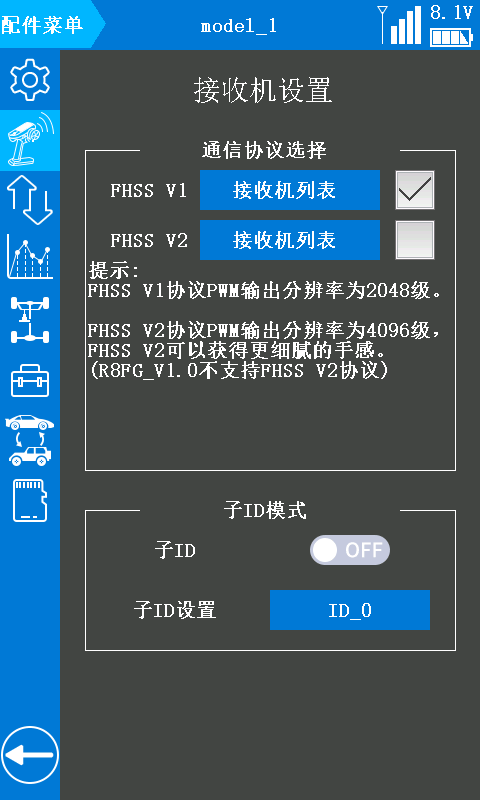 *注意:需将 RC8X 遥控器固件升级至 V1.1.5 或以上版本,并在“接收机设置”页面中选择FHSS V2 通讯协议,