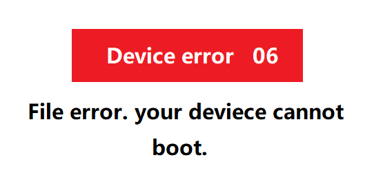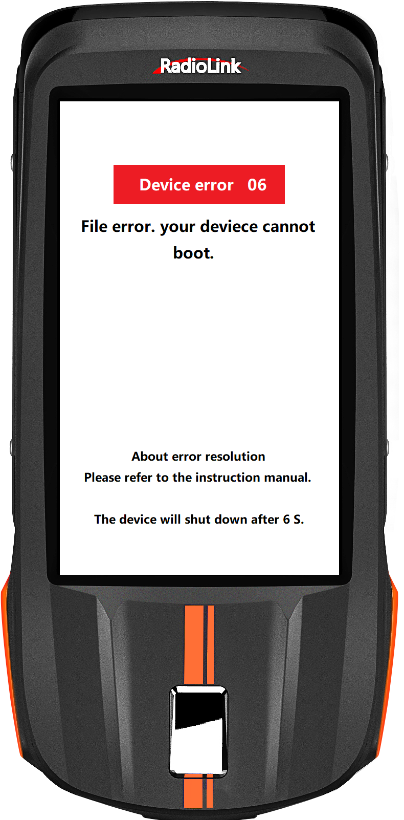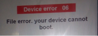 Q: After updating the firmware of RC8X, the screen shows the below Device error 06. How to solve the problem?