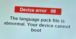 Q: The screen of RC8X shows the below Device error 08. How to solve the problem?