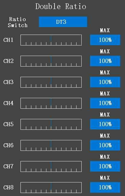 For the Double ratio, the travel on both sides of each channel will be adjusted simultaneously, and it can only be reduced (Please update the firmware to V1.1.0 or above).