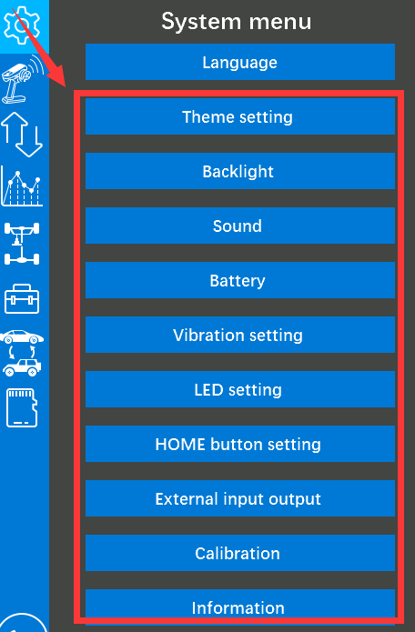 (1)You can adjust or turn off some functions on RC8X, such as the backlight setting, sound setting, vibration setting, LED setting in the system settings.
