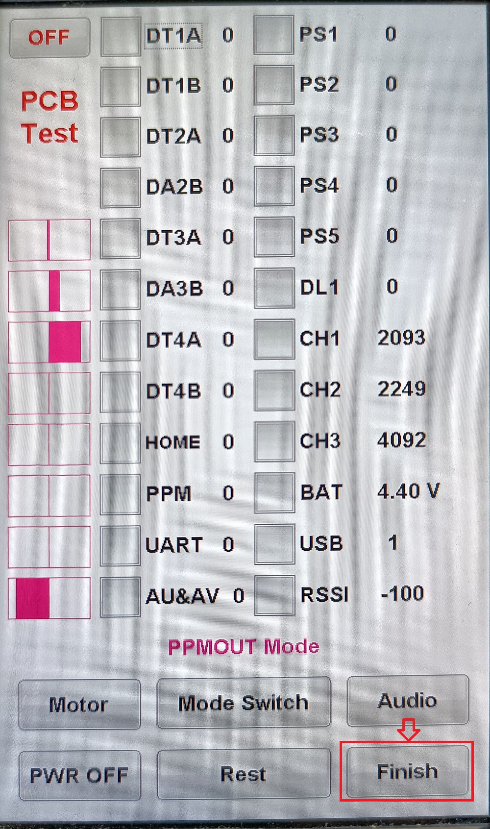 3. Turn on RC8X again. The screen will show the below page. Click Finish several times until RC8X is turned off.