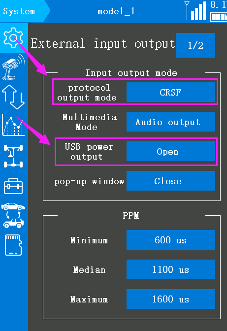 A: TBS Crossfire supports PPM and CRSF signals. So you can connect RC8X with it via PPM or CRSF. I’ll introduce the connection between the two signals.