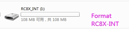 1. Connect RC8X to the computer. There are two files, RC8X-EXT, and RC8X-INT. Please format RC8X-INT.