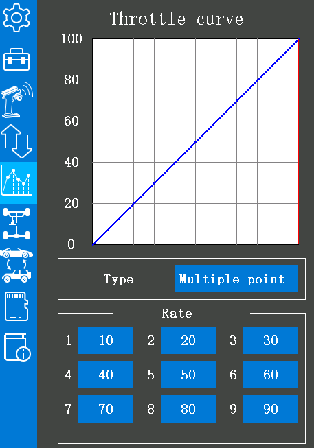 A: Throttle curve of RC8X supports 9 points curves
