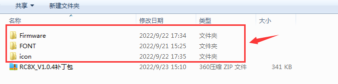 Note: The firmware downloaded from the official website is usually a compressed file. After downloading it to your computer, you need to unzip it first. After decompression, copy the three files (including Firmware, FONT, and icon) in the folder to the RC8X-EXT disk.