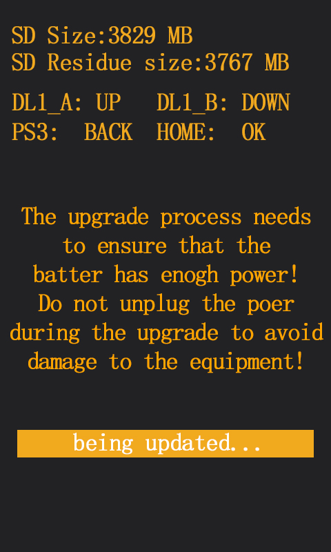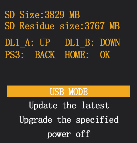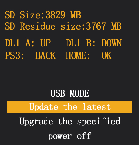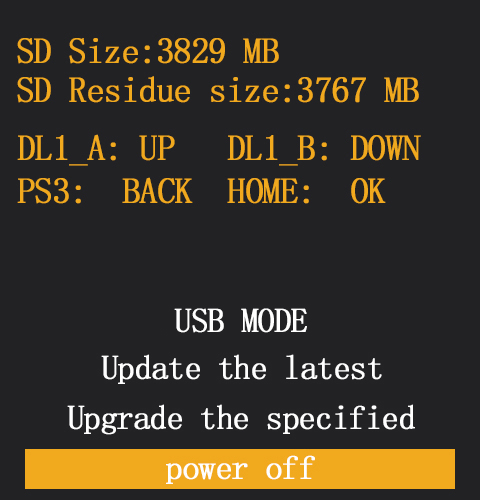 5)After the firmware copy is complete, press the PS3 button to return to the previous menu. Then turn the DL1 knob to turn the yellow background cursor to "power off", and then short press the "power button" to exit the upgrade mode.
