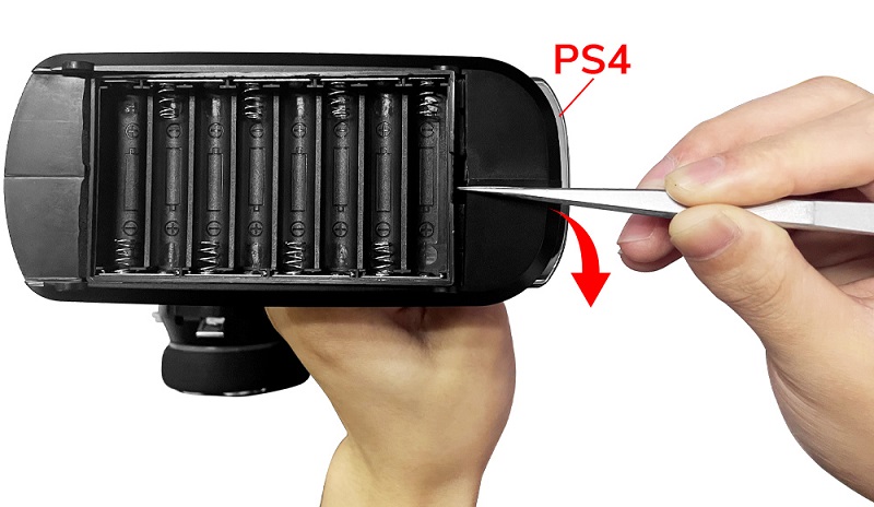 If you need to put the battery box back into the battery tray, please note that the notched end of the battery case faces the PS4 switch direction.