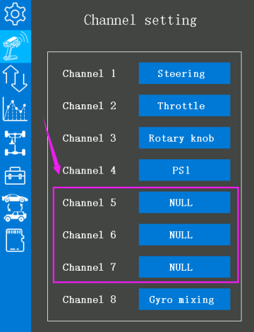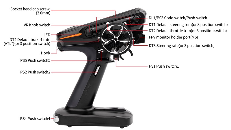 PS5 | Push Switch 5 | Default control CH7 can be programmed | Two PS5 switches on the left and right side, convenient for left and right-handed users |