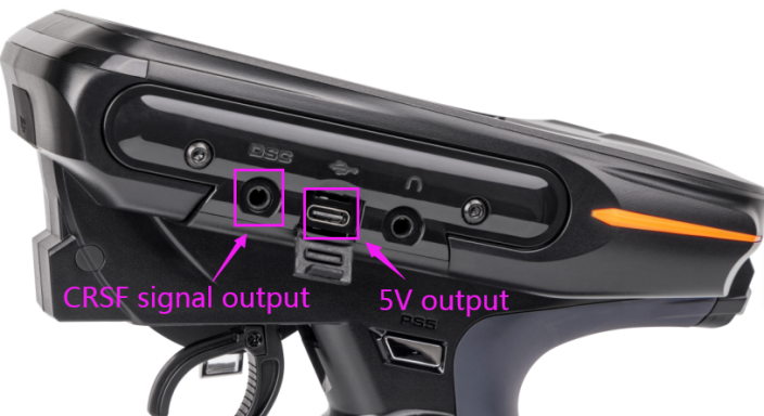 The USB Type-C port of RC8X is not only used to update firmware, copy data, and supply power to the 5.8G image transmission module but also used temporarily to supply power to RC8X. When the battery of RC8X is dead or the simulator is used, you can connect the power supply device such as a mobile power bank or a computer to the USB Type-C port to supply 5V power to RC8X, and then long press the home button to power on RC8X.