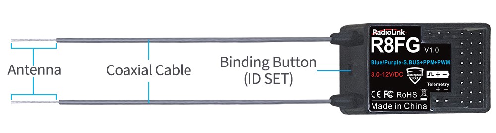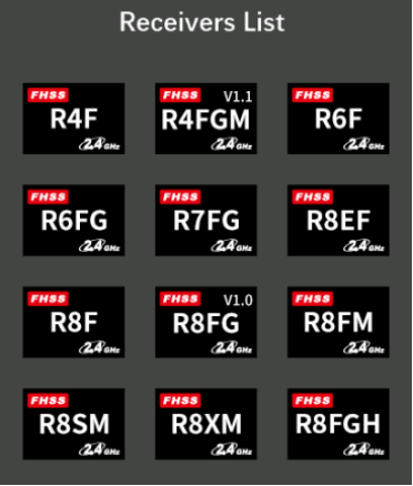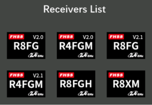 Compatible Receiver | R8FG(Standard), R8FGH, R7FG, R6FG, R6F, R8EF, R8F, R8FM, R8SM, R8XM, R4F, R4FGM |