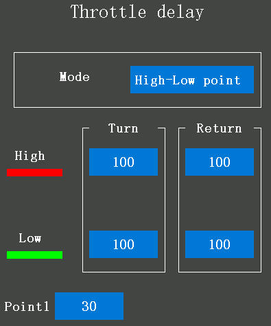 Note: If you set the "Type" of the switch to "jog", the value will reach the maximum (or the minimum) when pressing the switch, and back to the original value when loosen. For example: if the "Type" of PS1 is "jog", the servo value will reach +100 when pressing PS1 and will back to -100 when loosen. For more details on the switch setting, please refer to 2.2.7 Switch Select.