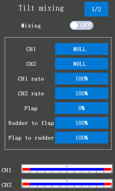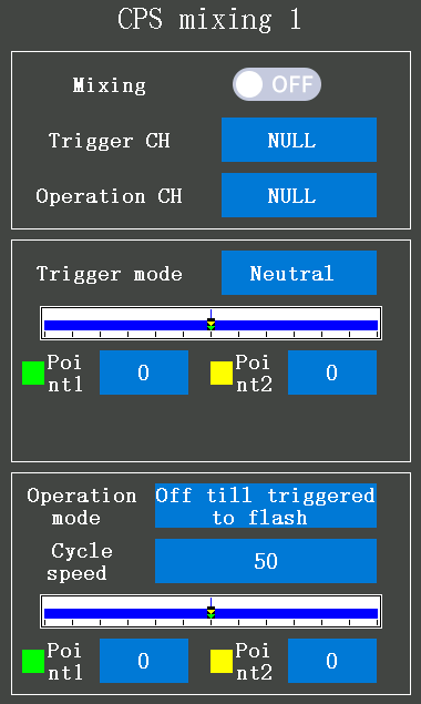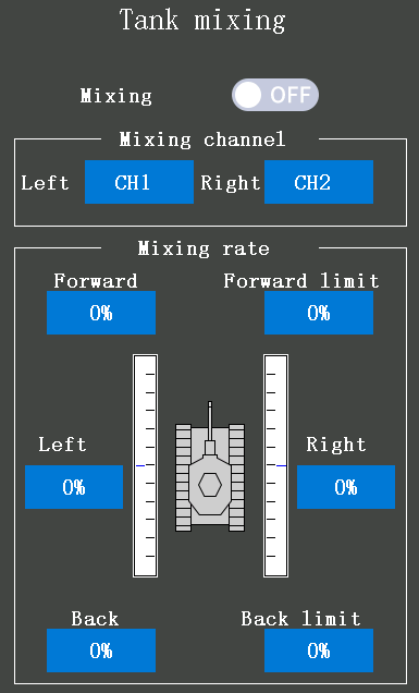 ⑤ Mixing function. The background color of the functional block will turn to blue if the mixing function corresponding turn on while the background color of the functional block will turn to grey if the mixing function corresponding turns off.