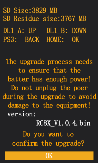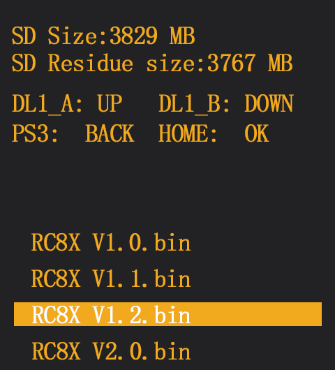 If there are several firmware saved in the microSD card, RC8X will recognize the latest firmware automatically and then update it in this update mode.