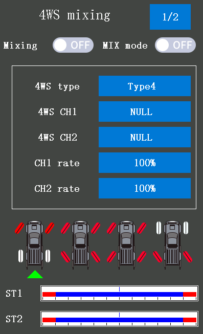 Multiple Programmable Mix Control such as 4WS, 4WD, Tank mixing, Tilt mixing, CPS mixing, etc.