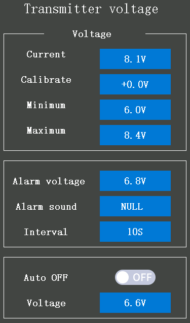 Not only is the voice package that comes with RC8X but also the customized voice is available for the user to set the Audio source. Users can make custom prompt voice production through text-to-speech software, and then copy the voice file to the transmitter, where they can choose their own voice. It is specially designed for users in non-English language countries.