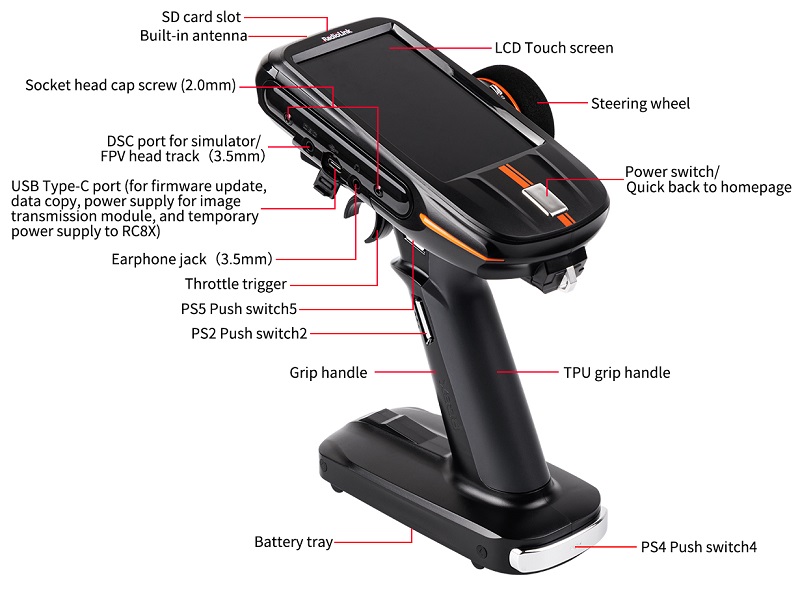 RC8X, is an 8 channels transmitter, with a 4.3 inches, full-color, backlight LCD touch screen, which runs smoothly like a smartphone.