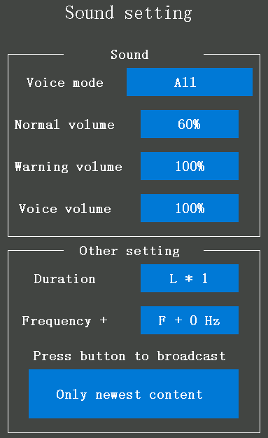 setting | Icon of setting | Sounds | Sounds of RC8X | |
