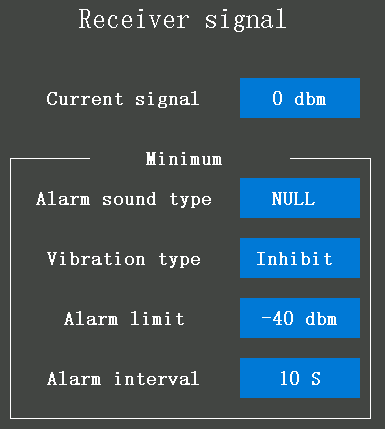 RSSI: the receiver signal strength, "NULL" indicates loss of signal or the transmitter and the receiver failed to bind. The RSSI is 0 to 30dBm is normal when the transmitter is apart about 60 centimeters from the receiver, the signal is better the RSSI data is closer to 0. The RSSI test steps can follow: 1.3.7 RSSI Testing