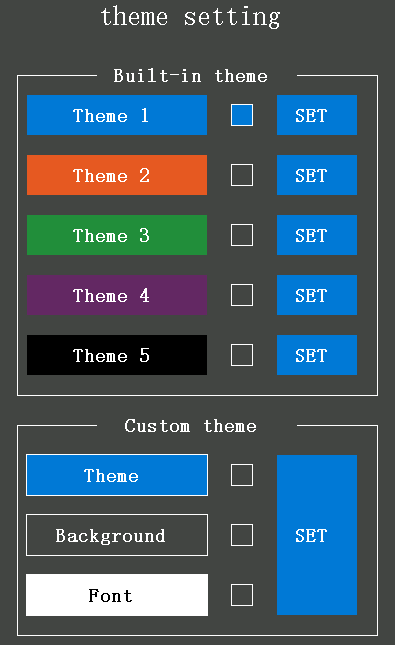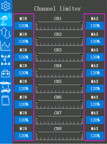 Setting Menu, font, desktop, system theme, etc., can be customized, and you can achieve a totally unique 8-channel transmitter without one code to modify.