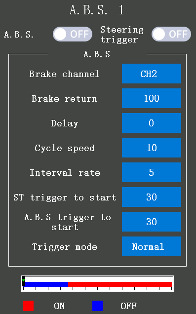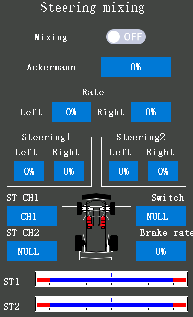 SS | Steering switch | The steering switch controls channel 1 by default to turn the vehicle left and right. You can also assign it to control channel 1 and other functions at the same time. | |