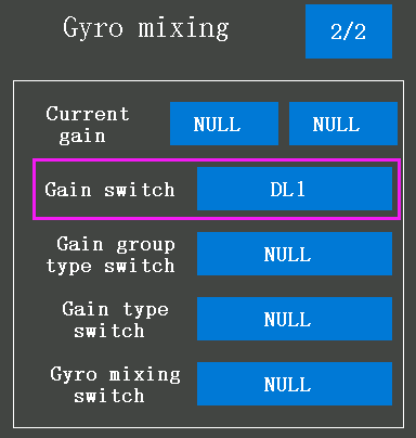 DL1/PS3 | Digital Dial 1 | Code switch, Gyro gain | Turn the dial counterclockwise /clockwise to adjust the value |