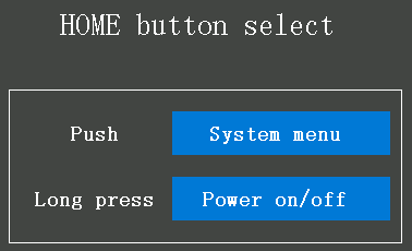 HOME: at the update mode, by pressing the power button to confirm the setting/select.