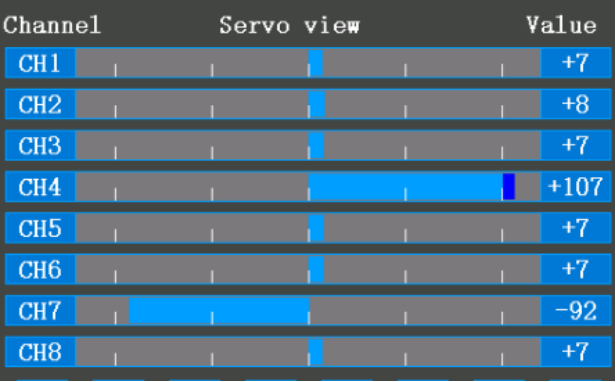 ④ Servo operation from CH1 to CH8. Real-time bar-graph display to demonstrate exactly what commands the transmitter is sending to the servos.