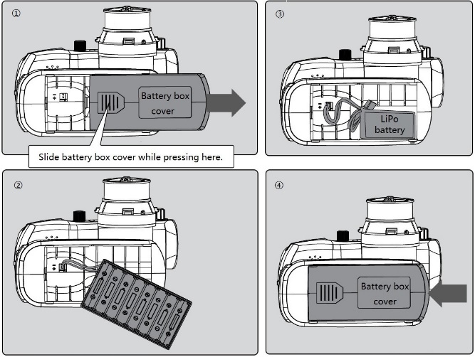If you use a LiPo battery for power supply, you need to remove the battery box that comes with the RC8X. Please refer to the following two methods to remove the battery box: