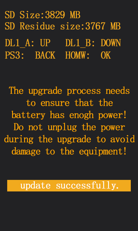 ④ "update successfully" pops out at the bottom of the screen means the firmware upgrade is successful.