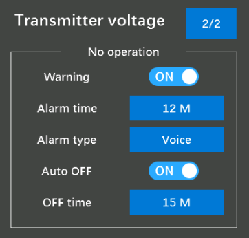 ⑥ T1:Total timer. It is used to record the total uptime of the transmitter. Turning off the transmitter will not affect time accumulation.