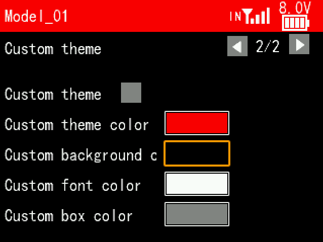 A: Yes. Users can customize the theme color, background color, font color and box color on T16D/T12D. Enter Transmitter Settings--THEME SETTING. Users can set the white background and black fonts here.