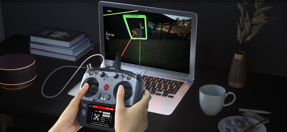 除了凤凰等传统模拟器,T16D和接收机R16F/R12F还内置了模拟器功能(需先将固件升级到V1.7.1版本),