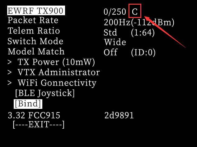 After the binding is successful, the short line “-” in the upper right corner will change to "C". Return and you can see the signal tower on the top, and the LED of the ELRS receiver is always on.