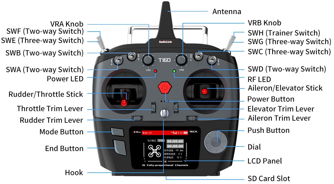 T16D supports customized switch voice. Users can use text-to-speech software to create custom voice files, and then copy the voice files into the transmitter to use their own voice.