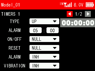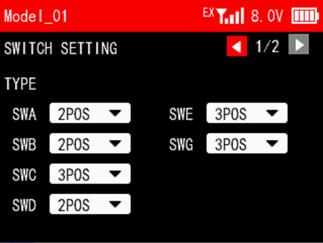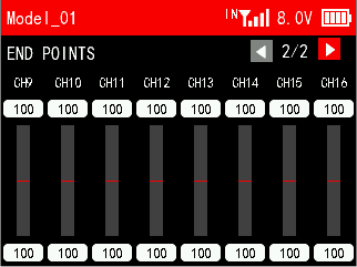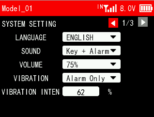 RX VOLTAGE VALUE: When the receiver voltage reaches the receiver voltage alarm value, the transmitter will issue an alarm. The minimum alarm value can be set to 3V. The maximum can be set to 12V. It defaults to 4.2V.