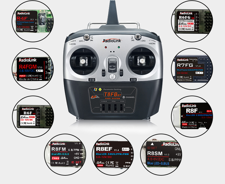 新版蓝牙版T8FB内置蓝牙模块,可连接至安卓或者苹果手机调参APP,完成参数的设置与修改。